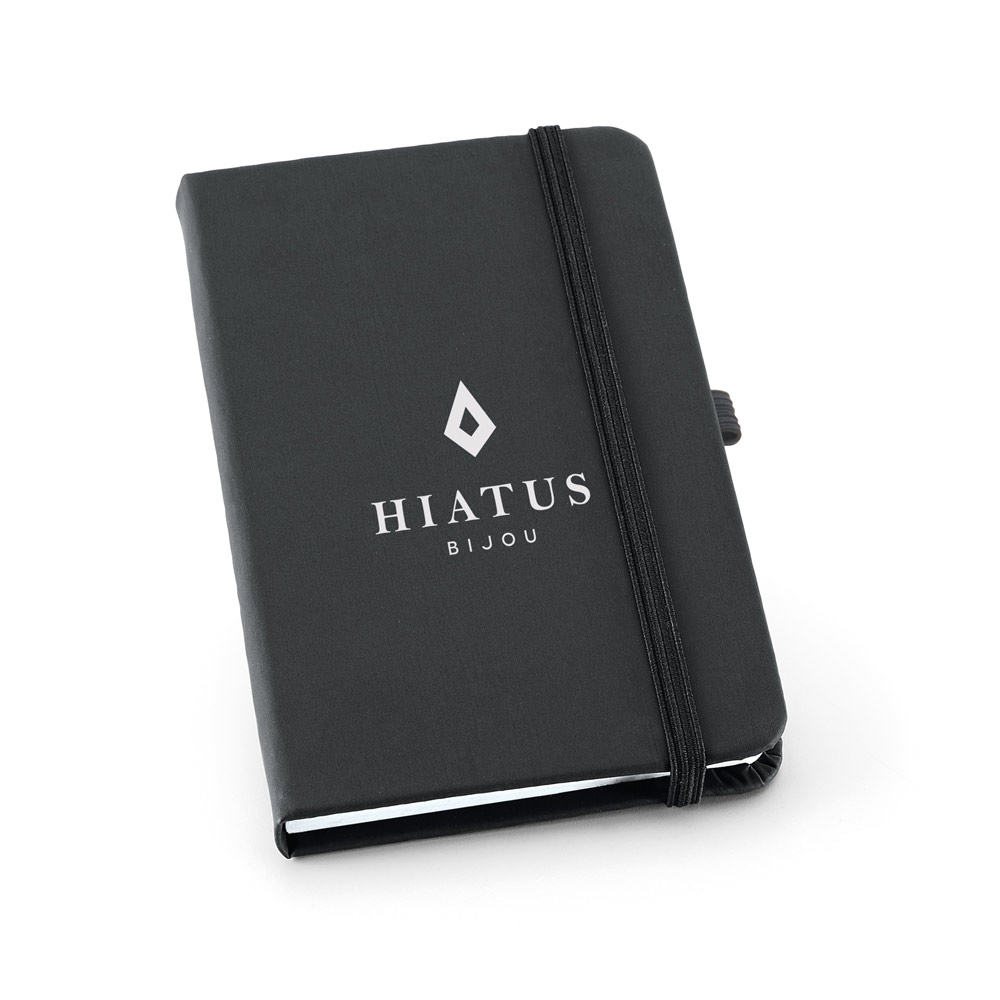 Caderno capa dura. C. sintético. Com porta esferográfica e 80 folhas não pautadas.