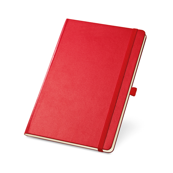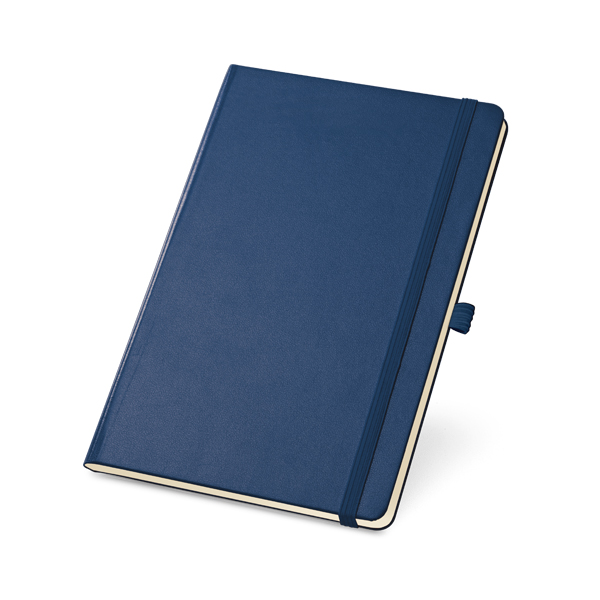 Caderno capa dura. Com porta esferográfica, bolso interior e 80 folhas não pautadas cor marfim.