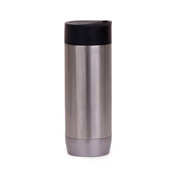 Caneca em aço inox parede dupla, conserva temperatura e tampa com vedação. Capacidade 450ml.