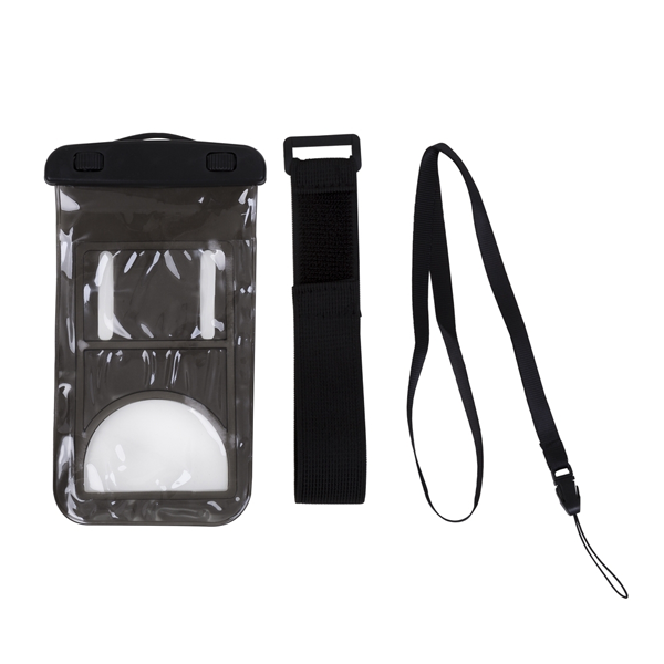Descrição:Case impermeável universal para smartphones com cordão de nylon de tamanho regulável.