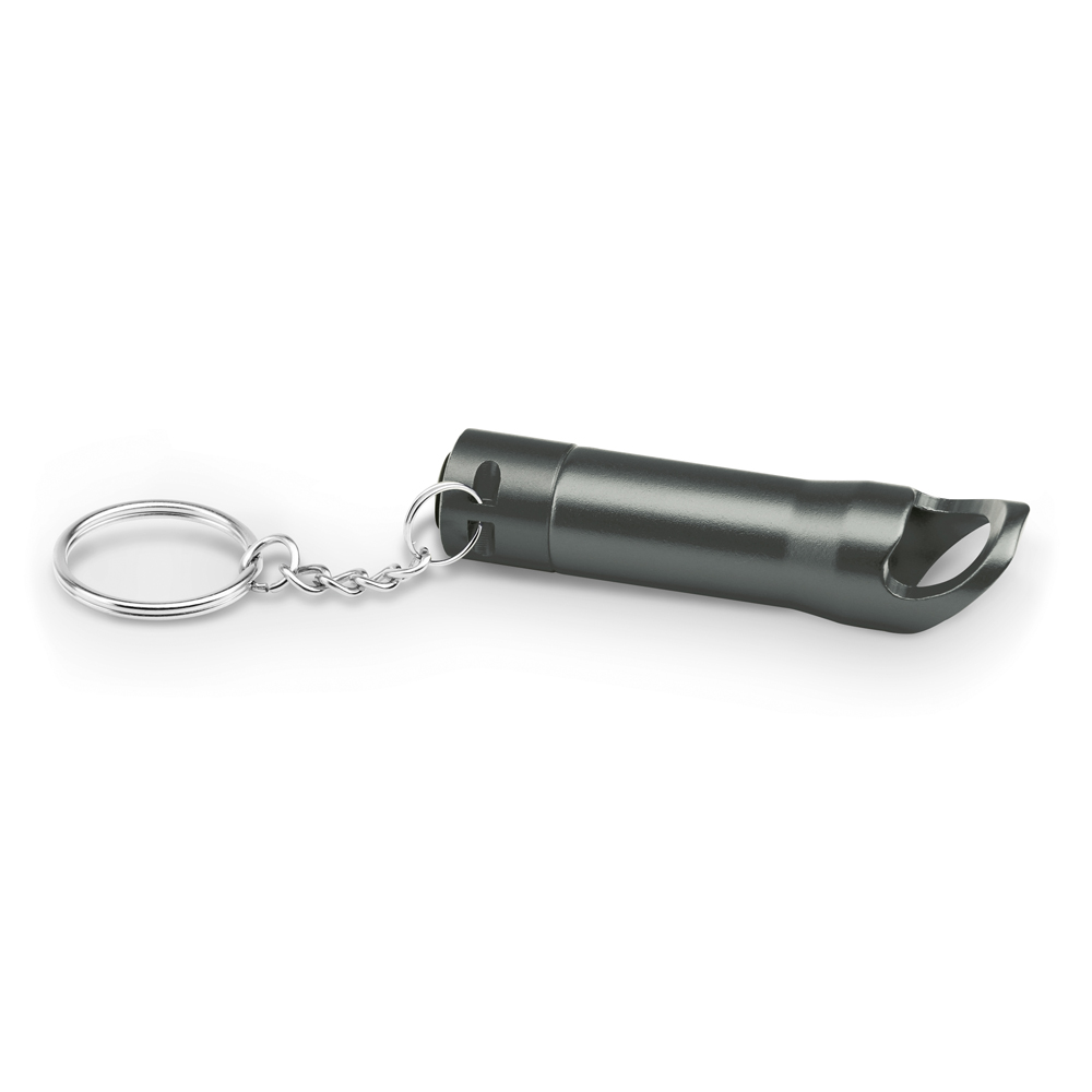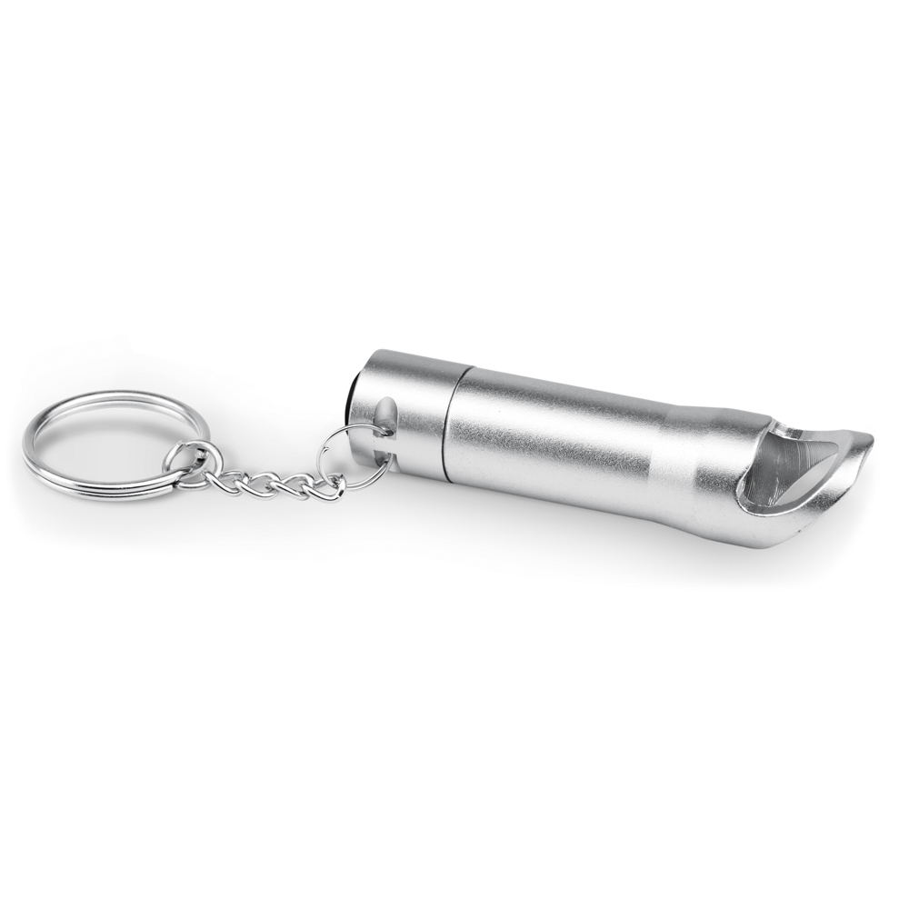 Descrição:TORCHEN Chaveiro Metal Com 3 LEDs Com abridor de garrafas. Incluso 3 pilhas LR44. ø18 x 72 mm