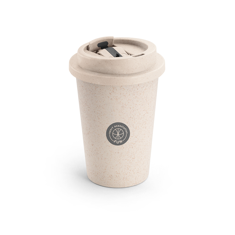 Descrição:TOFFA Copo de viagem. Fibra de bambu e PP. Com banda em silicone. Capacidade: 380 ml. Food grade. Ø95 x 114 mm