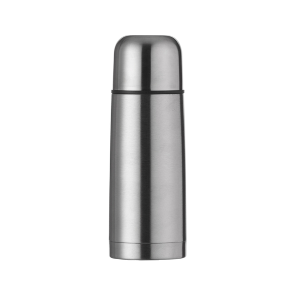 Descrição: Garrafa térmica 350ml em inox com tampa rosqueável, tampa interna em plástico resistente(basta um clique para abrir ou fechar). Acompanha capa protetora de couro sintético com alça de nylon. Medidas aproximadas para gravação (CxD):(CxL): 12,8 cm x 6 cm