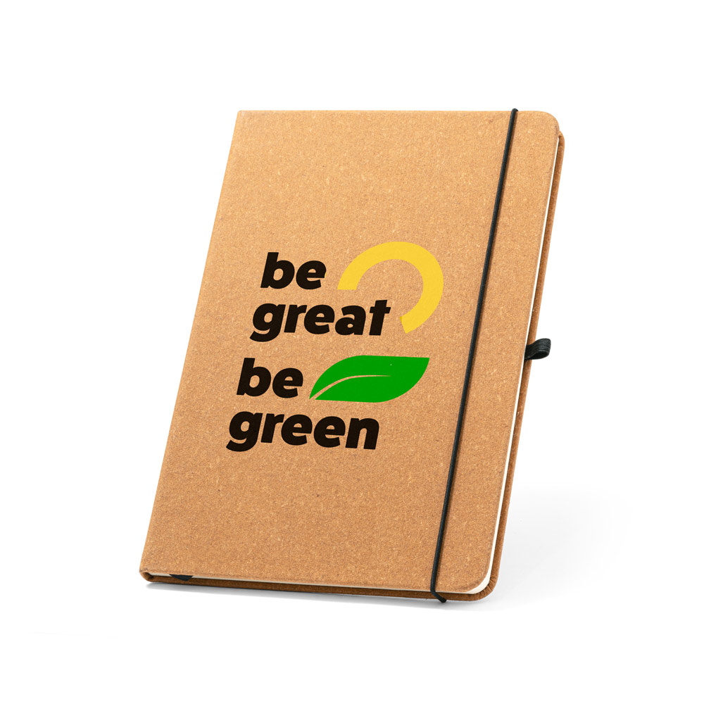 Caderno A5 em couro reciclado com 96 folhas pautadas cor marfim, em papel proveniente de gestão florestal sustentável. Suporte para esferográfica (não inclusa), elástico e fita separadora em preto. Contém bolso interior. Fornecido em envelope preto de cartão. 140 x 210 mm