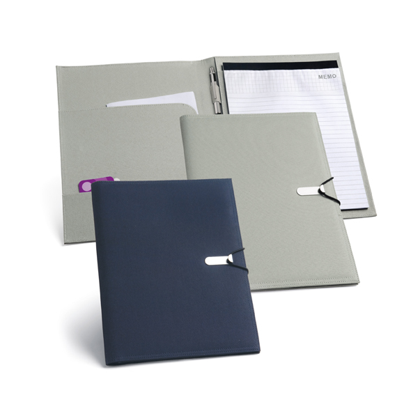 Descrição:Pasta A4. 600D. Bloco: 20 folhas pautadas. Esferográfica não inclusa.
