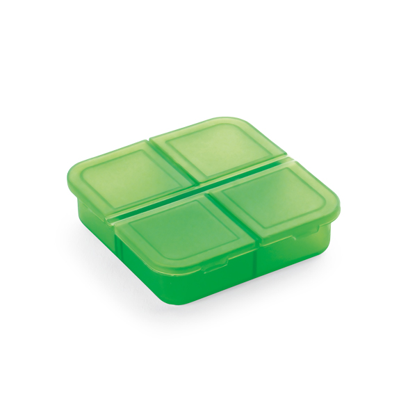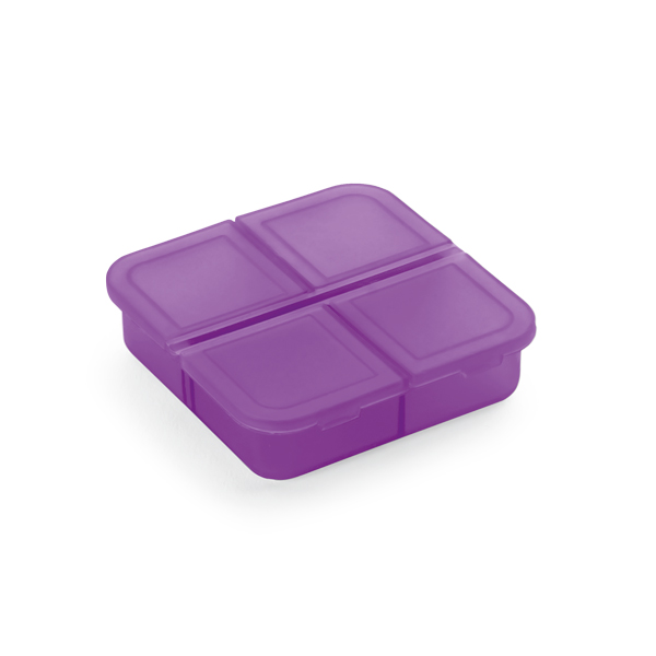 Descrição:Porta comprimidos. Com 4 divisórias. Food grade.