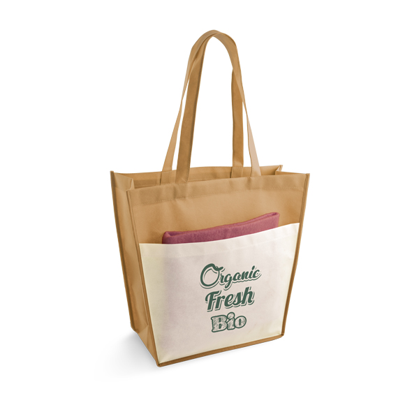 Descrição:Sacola. Non-woven: 80 g/m². Bolso frontal. Alças de 60 cm.